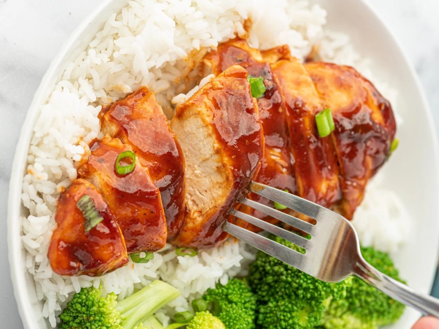 BBQ CHICKEN - Grillad kycklingfilé. Serveras med tomat, gurka, isbergssallad, bearnisesås och pommes frites. 109 kr